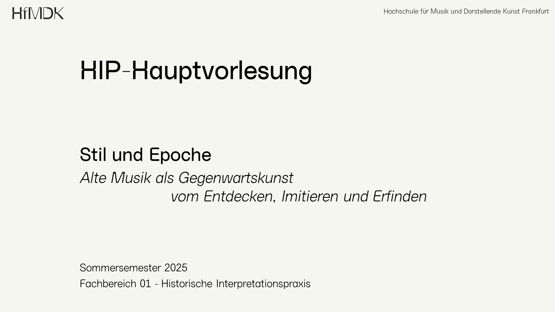Im Sommersemester 2025 steht der Themenkomplex „Stil und Epoche“ im Fokus. Unter dem Arbeitstitel „Alte Musik als Gegenwartskunst - vom Entdecken, Imitieren und Erfinden“ wird schwerpunktmäßig den verschiedenen Nationalstilen des 17. und 18. Jahrhunderts mit Berücksichtigung des 19. Jahrhunderts, sowie den Widersprüchen in solchen Einordnungen in klar abgrenzbare Musiksprachen nachgegangen. Definierbare Bestandteile barocker Stile werden ebenso im Zentrum stehen wie Originale, Pioniere, Nachschaffende und Epigonen und die Frage, wie man vom Lernenden zum „Original" wird.